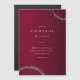 Un élégant design d'invitation à cocktails par Stacey Meacham avec un arrière - plan texturé rouge profond et des anneaux de cocktails dorés. Le dos est magnétique. Parfait pour les événements professionnels ou personnels.