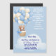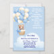 Celebrate the joyful arrival of your little prince with this boy baby shower invitation designed to be both sweet and meaningful. Featuring a charming teddy bear flying with multiple blue and white balloons, this invitation captures a sense of wonder, innocence, and happiness—perfect for welcoming a baby boy.