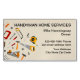 magnets cartes de visite pour un Handyman ou une société de construction avec l'image d'une variété d'outils à main et la disposition simple pour les services de maintenance résidentielle ou commerciale sous forme d'aimant que vous pouvez distribuer aux clients et clients potentiels.