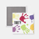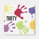 des mains rouges, bleues et jaunes avec des mots disant DIRTY fait un Magnet de lave-vaisselle sale