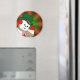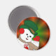 Cet aimant enneigé coloré s'illumine partout où l'on choisit de le coller ! Arrière-sol dégradé rouge et vert. Le bonhomme de neige est d'une carte de Noël vintage et a été recoloré / retravaillé. Pratique et décoratif pour vos activités, épicerie ou Père Noël.