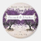 Cartes d'invitation fantaisistes de bosquet forestier avec arbre de feuilles de coeur violet et rose pêche -