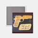 Ce pistolet à bois a l'humour de dire 'on n'appelle pas le 911', avec un arrière - plan à grains de bois tout affiché dans les tons de terre brune qui met en évidence la citation. Un patriotisme mignon pour les magnets de cuisine et d'entrée.
