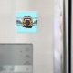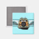 Un vintage boisé équipé d'une paire de longboards, trouve la parfaite double onde de rupture. L'onde illustrée a une image fantôme d'un hibiscus pareau imprimé. La plaque d'immatriculation de la Californie vintage indique Beachin'. Cet aimant de surf est offert en plusieurs couleurs.