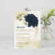Belle carte de fleurs blanches et d'or avec détails botaniques de feuilles d'or en bleu marine et ivoire.