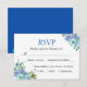 Carte de réponse RSVP de la "Collection de mariage florale bleu saphir". Une belle composition florale avec de superbes accents bleus saphir. – PERSONNALISEZ FACILEMENT CE DESIGN en utilisant les invites de menu faciles de Zazzle. D'autres éléments de la "Collection de mariage florale bleu saphir" sont disponibles.