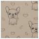 Tissu de bulldog français mignon pour vos projets de couture et d'artisanat créatif. L'impression est faite d'illustrations de dessins animés de bulldog en France, simples mais adorables, et d'une multitude de petits coeurs doux imprimés tout autour du doux petit. L'arrière - plan est dans une couleur crème neutre et il peut facilement être changé en une couleur différente pour convenir à votre projet le mieux. Un matériau agréable pour tous ceux qui possèdent et aiment les bulldogs français.