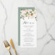 Elégante carte de menu de mariage personnalisée avec une bordure supérieure de magnolias blancs et des fleurs d'aquarelle rose vif avec des feuilles verts luxuriants. Personnalisez les menus de mariage personnalisés en ajoutant vos noms, votre date de mariage et vos détails de menu mariage.