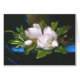"Giant Magnolias on a Blue Velvet Cloth" peint par Martin Johnson Heade en 1890; huile sur toile; National Gallery of Art, Washington. Martin Johnson Heade, 1819 - 1904, était un peintre américain prolifique connu pour ses paysages de marais salants, ses paysages marins, ses portraits d'oiseaux tropicaux et ses natures mortes. Son style de peinture et son objet, bien qu'ils soient dérivés du romantisme de l'époque, sont considérés par les historiens de l'art comme un écart significatif par rapport à celui de ses pairs.