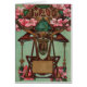 Mois de mai. Gémeaux de signe de zodiaque. Belle illustration vintage d'astrologie de Nouveau d'art, avec l'influence d'art déco, éditée comme carte postale en 1911. Très coloré avec la fleur de naissance, la pierre verte de naissance, les couleurs roses et vertes lumineuses et les caractères gras.