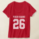 T-shirt de football féminin en jersey personnalisé numéro rose. Mignons vêtements de sport pour les femmes et les filles qui encouragent. Ajoutez votre nom, nom de l'équipe, lettres monographiques et numéro. Rose et autres couleurs. Mode amusante pour les fans de football américain, de basket, de football, de baseball, de hockey, etc. tee - shirts rayés Cool pour les joueurs, pom-pom girls, fans et entraîneurs. Comprend des bandes blanches de rugby sur les bras.