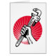l'illustration d'une main de plombier jugeant une clé à tube faite dans le rétro style de gravure sur bois a placé le cercle intérieur avec le rayon de soleil