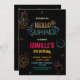 Bonjour invitation de fête d'été, fête d'anniversaire d'été, fête de fin d'école, invitation de fête de piscine.