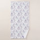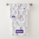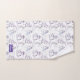Des couleurs violettes et bleu clair sont utilisées pour faire ce snowman ensemble de serviettes de bain sans couture. Illustration tirée à la main d'un mignon bonhomme de neige avec chapeau, foulard et nez de carotte. Il se tient sur une colline de neige près d'un sapin de Noël avec une étoile. Le texte "Joyeux Noël !" est inclus en motif.