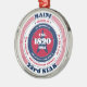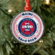 Montrez votre fierté d'Etat en cette période de fêtes avec cet unique ornement de Noël dédié au Maine, le 23ème Etat. Il a des couleurs patriotiques rouges, blanches et bleues avec un design de typographie circulaire sur un arrière - plan blanc. Le texte comprend des faits sur l'État, tels que son nom, sa capitale, son abréviation d'État, sa région, son fuseau horaire, ses coordonnées géographiques, l'année de sa création et le nom de son résident. C'est un grand cadeau pour ceux qui souhaitent célébrer leur état ou pour ceux qui se sentent nostalgiques de leur état d'origine.