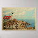 Maine poster featuring a lighthouse on the cliff shore, overlooking the Atlantic ocean. For Maine Vintage Travel Posters or Maine gifts, this art print makes the perfect souvenir or memento. Thanks to Jerry and Pat Donaho's photo as base www.flickr.com/photos/donahos/9393972784
