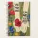 Une ligne de poésie de Rumi est tapissée sur les bras et les paumes ouvertes contre le vert d'un jardin fleuri : Ouvrez vos mains si vous voulez être tenu. À l'arrière du planificateur calendrier se trouve un champ de trèfle et une coccinelle rouge. Les oeuvres originales ont été créées en collage papier.
