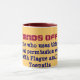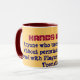 Le texte lit des "MAINS, n'importe qui qui utilise cette tasse sans autorisation sera maudit avec la peste et les ongles de pied invétérés"