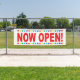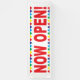 MAINTENANT OUVREZ le panneau avec une bordure colorée et un grand type rouge. Bannière des panneaux d'ouverture d'entreprise pour annoncer qu'une nouvelle entreprise est ouverte ou un emplacement.