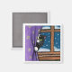 Aimant frigo d'art de chat Whimsical. Chat noir et blanc jouant à un jeu de jour d'hiver de cache-cache et cherchez derrière les rideaux. Créé à partir d'une peinture originale © 2008 Lisa Marie Robinson