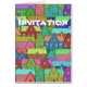 Graphique avec beaucoup de maisons colorées... avec le texte "Invitation"