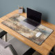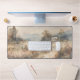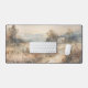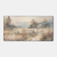Ce tapis de bureau est orné d'un tableau représentant un paysage qui comprend une maison de campagne à côté d'une forêt. Ce design a une ambiance relaxante avec ses couleurs douces et muettes.