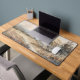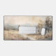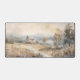 Ce design de tapis de bureau présente une peinture coloniale d'une maison de campagne située dans une forêt au milieu des collines. Ce design offre une atmosphère relaxante avec des couleurs douces et muettes.