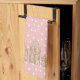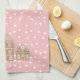 Profitez de notre maison en pain d'épices serviette de cuisine motif rose village.