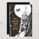 Une image de maison hantée en noir et blanc à l'ancienne, avec pleine lune, arbre nu et corbeaux, est la caractéristique à l'avant de cette invitation de fête d'Halloween. Le texte sur le devant dit : "C'est une soirée maladroite pour une fête !" en orange. Le dossier noir solide offre beaucoup de place pour vos informations de fête. Facile à customiser, et si vous souhaitez modifier la police, la taille, l'emplacement ou la couleur du texte, vous pouvez le faire en choisissant "Customiser".