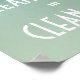 Maison propre égale esprit sain affiche de propreté. La phrase est imprimée en lettrage blanc soigné sur un fond vert foncé. Favorisez la propreté et ses avantages pour la santé mentale et le bien-être avec cette affiche de propreté simple et efficace.