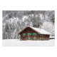 Photographie d'une maison traditionnelle en bois rond cabine avec volets verts dans une forêt dans la neige en hiver en Bavière à la frontière entre l'Allemagne et l'Autriche.