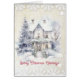 Une belle image d'une maison de l'ère Victoria avec des voeux de Noël d'amour en rouge et une sous-couche dentée en crème. Le verset intérieur vous souhaite une journée remplie d'amour et de soleil