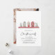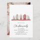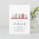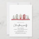 Maisons mignonnes Photo Fête de Noël Invitation. Le Joyeux Noël Invitation dans un style moderne avec des maisons mignonnes aux couleurs rouge et vert. Une photo.