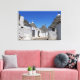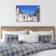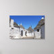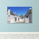 Impression en toile des maisons traditionnelles en plâtre blanc trulli avec tuiles en pierre dans les toits coniques dans une petite rue de la ville Alberobello, Vallée d'Itria dans les Pouilles, Italie.