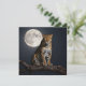 A powerful leopard with piercing yellow eyes and a sleek, spotted coat sits majestically on a stark, solitary branch. One paw dangles artfully across the center of the illustration, hinting at movement. Behind him, a vast, luminous harvest moon hangs in the inky night sky, casting an ethereal glow. Awesome blank notecard for anyone who loves leopards.