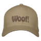Casquette de baseball avec le mot "Woof !" brodé sur le devant.
