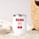 Embrassez le style de coquette ludique avec ce design rose Bow et Red Cherry. Ce style s'appuie sur des images rétro avec un style moderne. Texte : "MAMA". Suivez les invites si vous souhaitez customiser le texte pour dire "Maman", "Nonna", "Nana" ou tout autre nom.