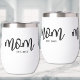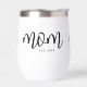 Tumbler à vin isolé personnalisé avec un simple script Maman. Célébrez la maternité avec ce design minimaliste comportant le mot « maman » dans une police de caractères cursifs fluides affichée sur trois côtés du tumbler pour qu'il soit visible sous tous les angles. En bas à droite, un « année de fondation » classique en serif ajoute une touche personnelle - parfait pour une future maman, une nouvelle maman ou pour célébrer maman à tout moment. La couleur de fond peut être changée en n'importe quelle couleur. Idéal pour la fête des mères ou pour une utilisation quotidienne, ce design épuré et moderne offre une façon intemporelle d'honorer maman avec style.