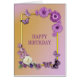 Une belle carte d'anniversaire fleurie. Fleurs et papillons sur un cadre doré.Un thème lilas donne une atmosphère détendue mais luxueuse. Une carte merveilleuse à donner à quelqu'un dont vous vous souciez le jour de leur anniversaire.