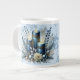 Votre mère appréciera vraiment cette belle tasse à bougie bleue sur un arrière - plan bleu étincelant avec le texte "Joyeux Noël" et "MOM"