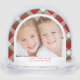 Elégant globe de neige Christas cadeau pour la meilleure maman jamais présenté "Love You Mom" et des photos de son enfant ou de ses enfants dans des cadres en arc sur un joyeux arrière - plan plaid de saison rouge, vert et blanc. Ajoutez l'année et leurs noms en lettres simples rouges.