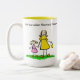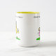 Mère et fille se tiennent la main. La chemise de la mère lisait "maman" et la chemise de la fille "moi". Les deux chiffres ont des cheveux blonds. Customisez cette tasse avec vos propres noms pour faire un cadeau personnalisé pour la Fête des Mères !