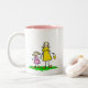 Mère et fille se tiennent la main. La chemise de la mère lisait "maman" et la chemise de la fille "moi". Les deux chiffres ont des cheveux blonds. L'espace ci-dessus est laissé vide afin que vous puissiez personnaliser, selon vos besoins. Faites un cadeau personnalisé pour la Fête des Mères !