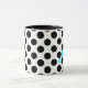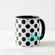 tasse de café à pois polka personnalisée en noir, aqua et blanc.