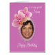 Une carte d'anniversaire pour une mère. Les orchidées symbolisent l'amour, le luxe et la force, des qualités qui reflètent la beauté de son esprit. Pour son anniversaire, je souhaite que sa journée soit aussi exquise et inoubliable que ces fleurs. Ajoutez sa photo pour créer une carte unique spécialement pour elle.