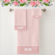 Mère texte sur les teintes rose clair Ensemble de serviettes de bain. Le texte peut être personnalisé. Texte seulement d'un côté.