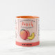 La Mug de café de confiture de maman de classe mondiale rétro. Confiture artisanale Peach Jam emballé avec l'amour de maman étiquette. Le cadeau idéal pour la Fête des Mères ou Anniversaire. La conception de la tasse contient des faits nutritionnels, des informations sur l'allergie. et humbling mère comme des citations.