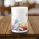 jolie porcelaine, bonne dimension effet brillant bien dans l'ensemble. Le motif et les couleurs sont réussis.Je trouve néanmoins dommage de ne pas occuper tout l'espace avc le motif car la partie rouge au dos de la tasse est trop présente et pas intéressante visuellement.