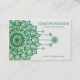 Mandala - Carte de visite double face. Arrière - plan a un effet mottled avec un contraste lucieux d'image verte et de police.