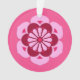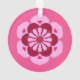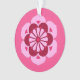 Ornement en acrylique de mandala japonais qui représente une fleur de lotus stylisée, symbolisant la pureté, l'éveil spirituel et la fidélité - fleur en rose doux, burgundy et rose vif sur fond rose fuchsia